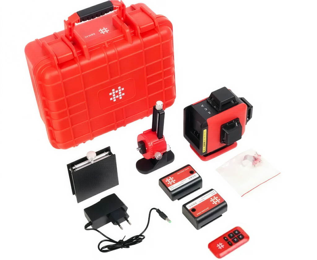Лазерный уровень Shijing E801-4D — профессиональный нивелир с зелёными японскими LD-лазерами SHARP, обеспечивающими яркую и чёткую проекцию. Прибор строит 4 замкнутые плоскости (16 линий): две вертикальные и две горизонтальные, каждая на 360°. Линии пересекаются под углом 90°, формируя точные кресты на стенах, полу и потолке, а также выполняя функцию отвеса.